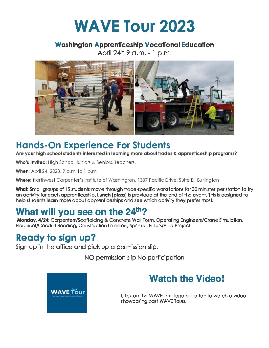There are limited spots available for interested juniors and seniors to see several hands on trades and apprenticeship programs on Monday April 24th.
